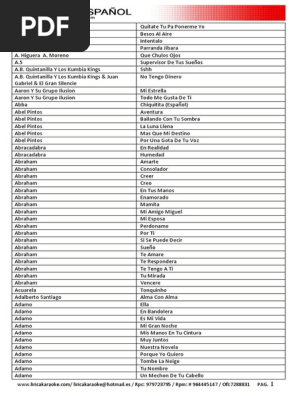 Listado De Canciones Aqui Cyber Music Karaoke