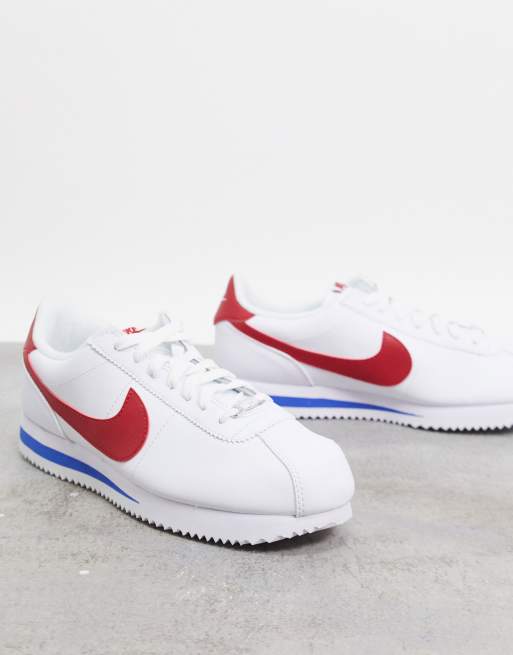 Nike Cortez Leather Sneakers In White With Red Swoosh Asos