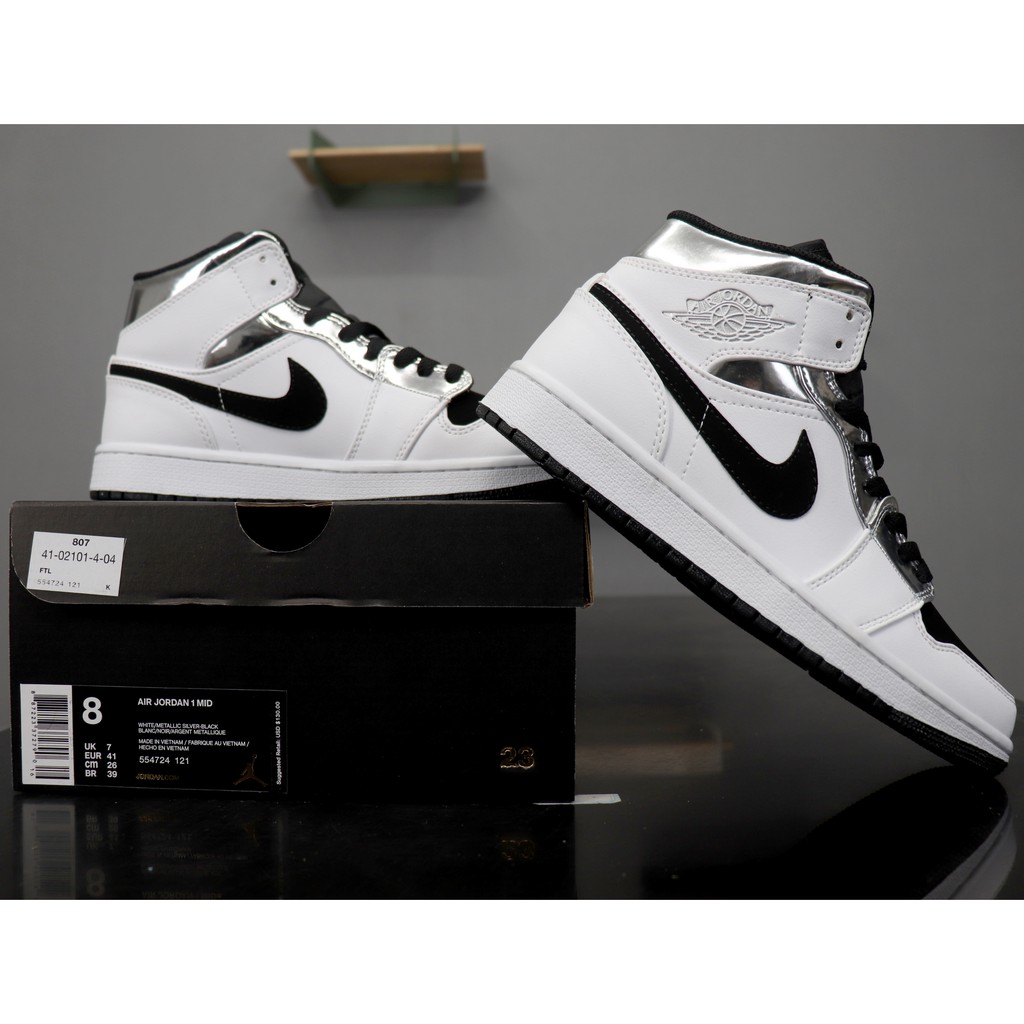Sepatu Sneakers Desain Nike Air Jordan 1 Mid Warna Hitam Putih Silver Shopee Indonesia