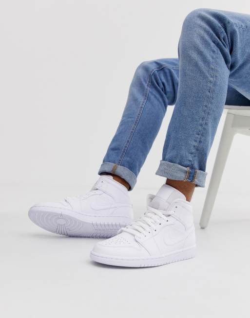 Nike Air Jordan 1 Mid Trainers In White Asos