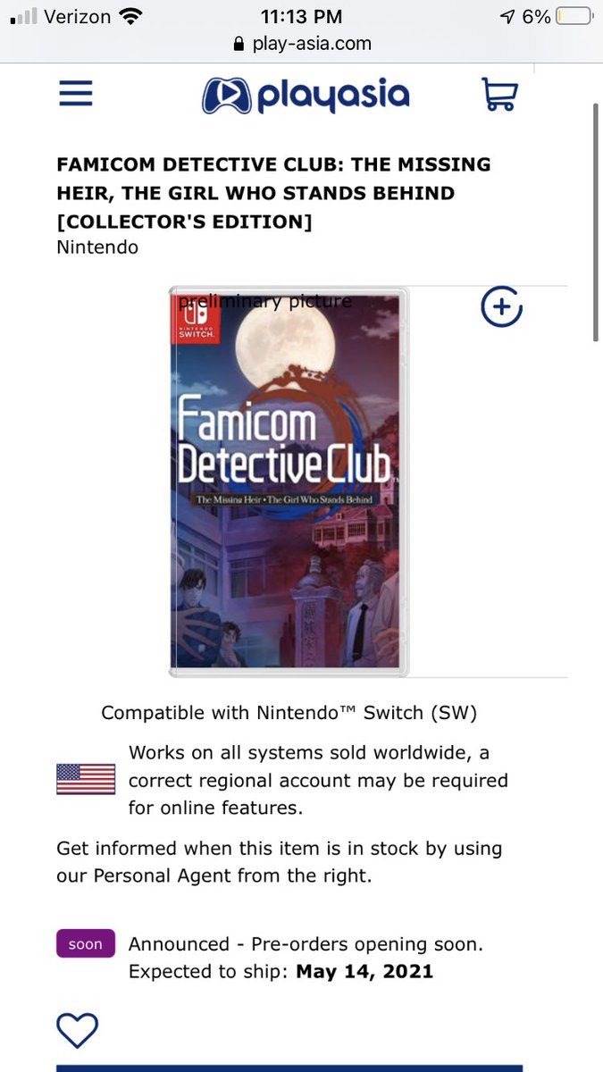 Jp S Switchmania On Twitter Potential Esrb Physical For Famicom Detective Club Posted At Playasia Thanks Newtination Https T Co Bptn0lpnjw Https T Co Lmi0pqfouq