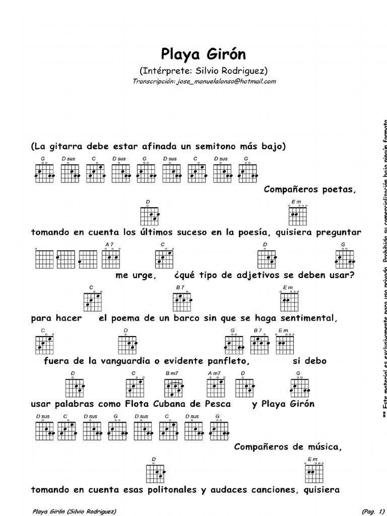 Playa Giron Acordes Y Letra Para Guitarra Ukulele Bajo Y Piano Silvio Rodriguez