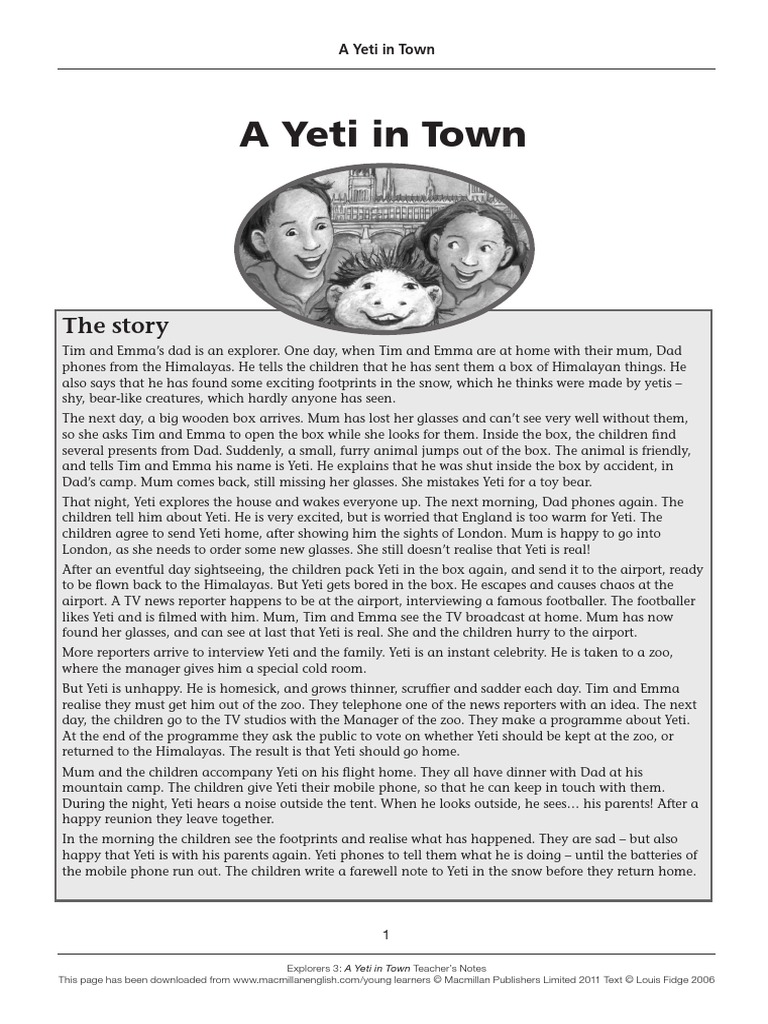 E3 A Yeti In Town Teacher Notes Pdf Reading Comprehension Symbols