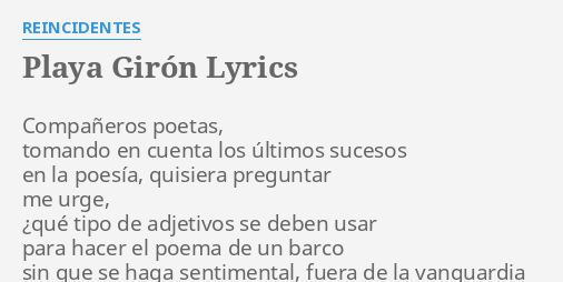 Playa Giron Lyrics By Reincidentes Companeros Poetas Tomando En